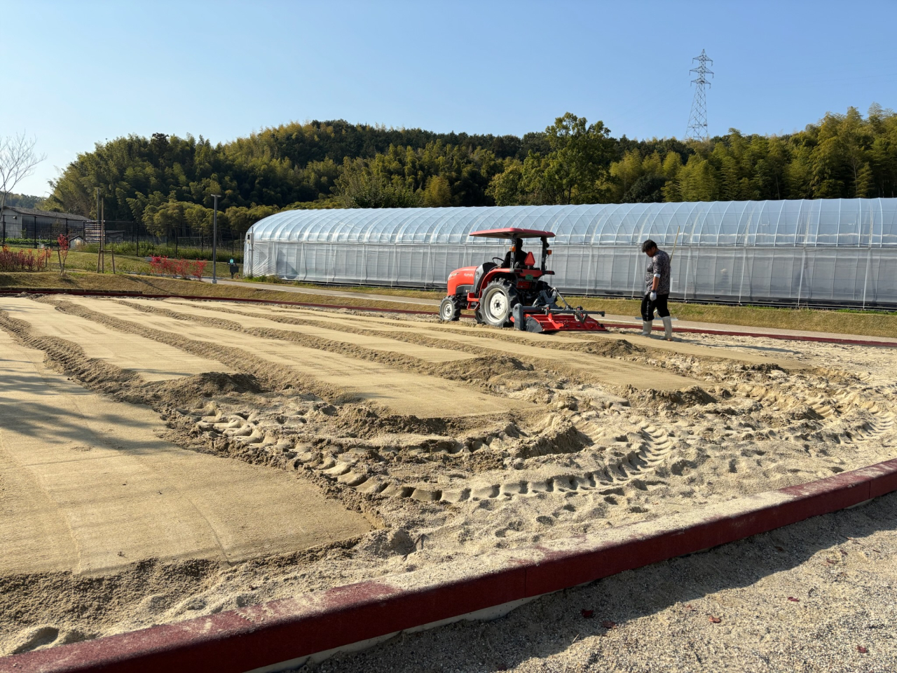 「ここリンク山城」では今回、ビーチバレー大会にあわせてタナクロ公園の砂場の耕運を請け負いました。