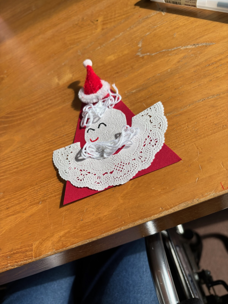 Yは午前中しか作業ができなかったので、の工程は 利用者さんと職員さんが仕上げてくださり、とてもかわいいサンタクロースが完成しました。